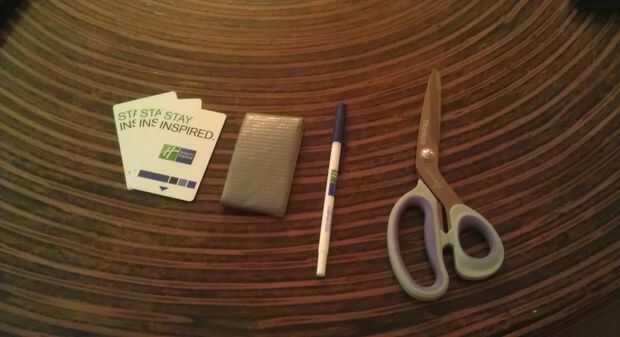 3 tarjetas de crédito (yo tengo la mía cuando me alojé en un hotel, pero cualquiera va a hacer)