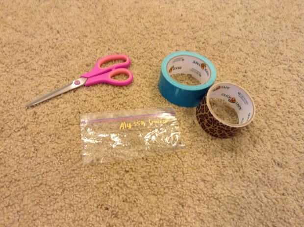 Necesita tijeras, dos colores de cinta adhesiva y una bolsa de ziplock tamaño bocado.