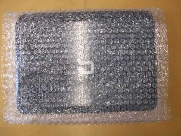 Coloque el portátil en un extremo y usarlo con cinta adhesiva los bordes hacia abajo por lo que efectivamente están haciendo ensobrado para el portátil. Nota: tenga cuidado en este punto a la cinta no es demasiado apretado o no será capaz de conseguir la laptop hacer retroceder, por no hablar de cuando consigue más estrictas cuando se agrega la cinta.