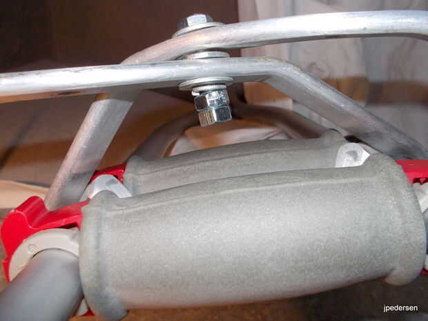 Había perforé dos agujeros adicionales en los soportes de ángulo en el extremo opuesto a donde se fija el mango. Colocó la karpeta Krazy debajo y marcados los agujeros con el marcador entonces perfora hacia fuera. También marcó y los agujeros perforados en la placa base plástica ajuste.