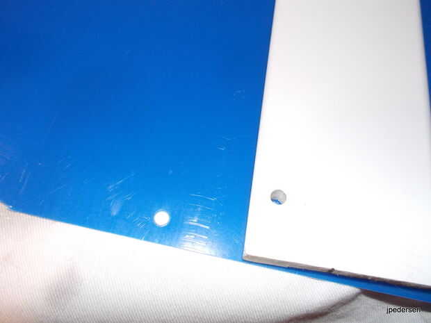 Deslice las arandelas grandes entre aluminio y perforar tres agujeros a su alrededor y luego pop remachado para sujetar las arandelas en su lugar, (las arandelas se utilizan para endurecer el aluminio).