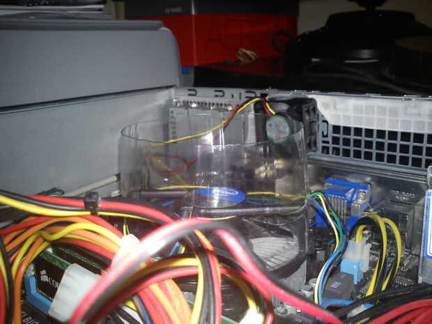 pongo un ventilador de 250mm en mi caso de Lian Li hermoso. Fue un intento de tratar de bajar el nivel de ruido, aumentar la refrigeración y hacer un solo punto de entrada en lugar de tener todo tipo de fans por todo el lugar. Esto era una solución e