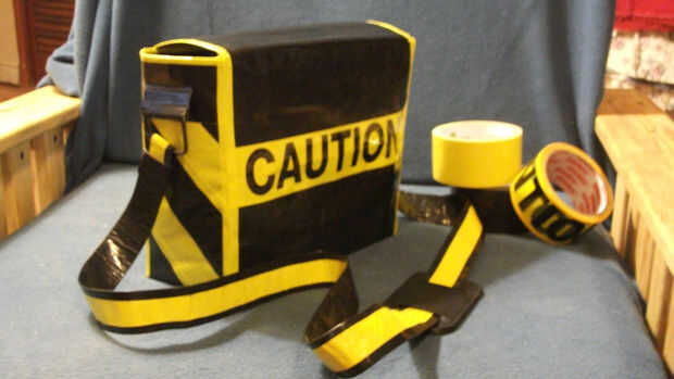 Lo que me ocurrió es un bolso de cinta del conducto con un no coser el forro de tela. La correa larga le permite funcionar como un hombro o un cruzar bolsa de plástico. La cinta de la precaución y el esquema de color negro y amarillo le dio una peculiar de la llamarada. La esposa le encanta y me alegro de que era capaz de crear algo que ella disfrute mucho.