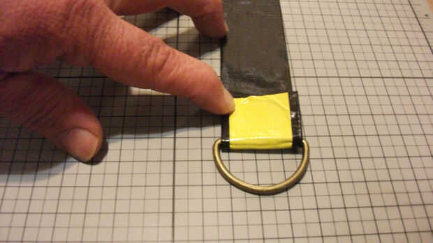 Una vez que determinado la longitud de que la correa debe estar, sacó una tira de cinta amarilla dos veces que desean. Después con mucho cuidado doblé y comenzó a presionar los lados pegajosos juntos manteniendo a demasiadas arrugas. Esto demostró para ser difícil y, aunque mucho más difícil de lo que imaginaba para hacer, lo hice sin demasiados errores mal.
