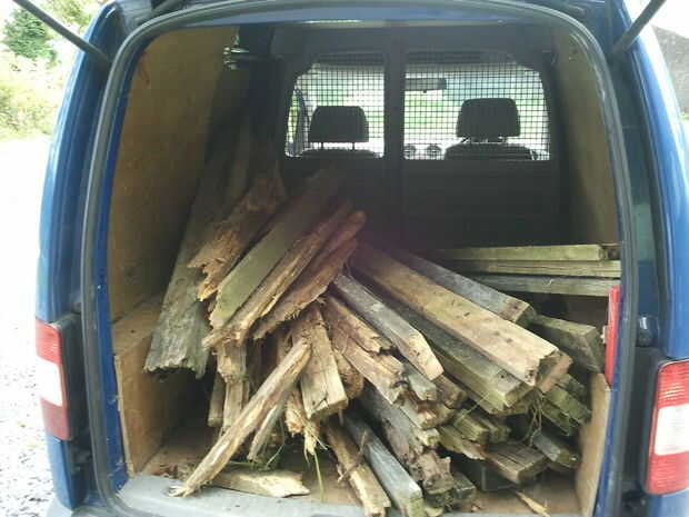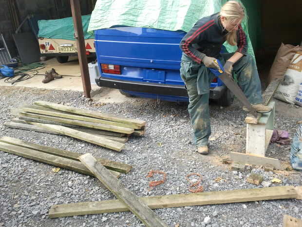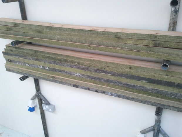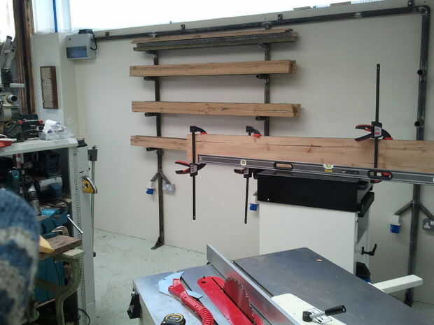 Ok así que en este momento tuvimos la suerte, como la capilla local fue sustituyendo su agradable (pero hay que reconocer que podrido en lugares) piquete madera vallado con una versión de plástico no tan agradable. De todos modos nos ofrece la madera, que era genial. Un poco de la clasificación, corte, de clavar y cepillado más tarde ya estaban listos para algunos estantes de laminado... Los beneficios de estantes laminados - como la mayoría de las cosas hecha de madera laminada, es que no tiene que ser un defecto en una sola pieza tanto de una preocupación ya que hay dos o más otros pedazos pegados al lado de él para darle fuerza a ese punto - madera con nudos por defecto se convierte en muy útil.