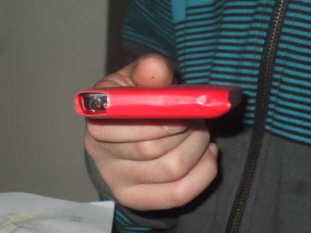 luego envuélvalo con cinta del conducto normalmente el ipod. doblar la parte superior y corte un orificio para los auriculares.