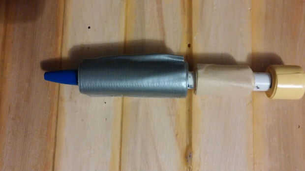 2. junto a la cinta del conducto, envuelva la pluma con la cinta adhesiva.