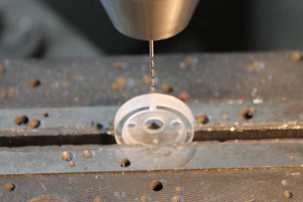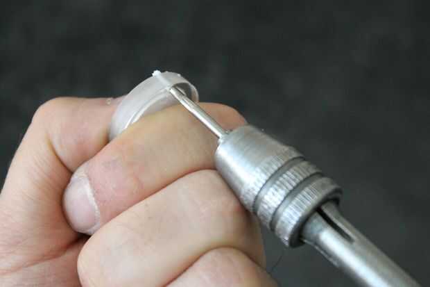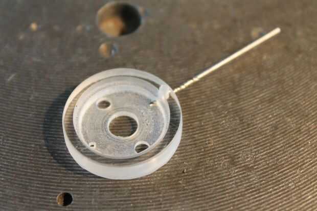 -Taladre un agujero de diámetro 1 mm perpendicular a la rosca M2 como se muestra en las dos últimas fotos