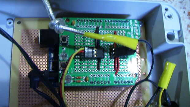 arduino después ordené la protoshield y puesto junto con algunas modificaciones que me permita conectar el servo y la olla un poco más fácil. Asegúrese de que saber qué cable se conecta a qué cable especialmente si usar un puerto usb para conectar el potenciómetro y servo.