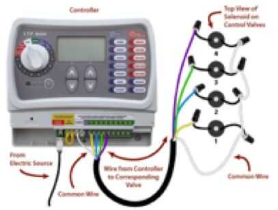 Mira el paquete de cable de las válvulas de riego. Uno de estos cables (blancos en nuestro ejemplo) está conectado a todas las válvulas. Este cable se llama común ya que es común a todas las válvulas. No es confundir con el punto común de relé. En cambio este común se conectará a un lado de la fuente de alimentación de 24 VCA. Cada uno de los cables restantes que se conecta directamente a una de las cuatro válvulas. En nuestro caso, conectar un cable de la fuente de alimentación 24vac al alambre blanco común y el otro para el cable rojo, hará que la primera válvula de la regadera encender. Conectar la alimentación al conductor blanco y amarillo se convertirá en el segundo conjunto de aspersores. Se debe probar que cada válvula esté funcionando correctamente antes de ir más lejos.