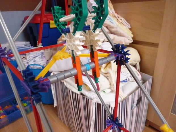 knexers Hola!Aquí están las instrucciones para el tercer ascensor nuevo en mi máquina de la bola de KVG paradoja.El elevador de brazo centro funciona bien y tiene un bajo pieza cuenta (excepto separadores de plata).Esta elevación fue originalmente in