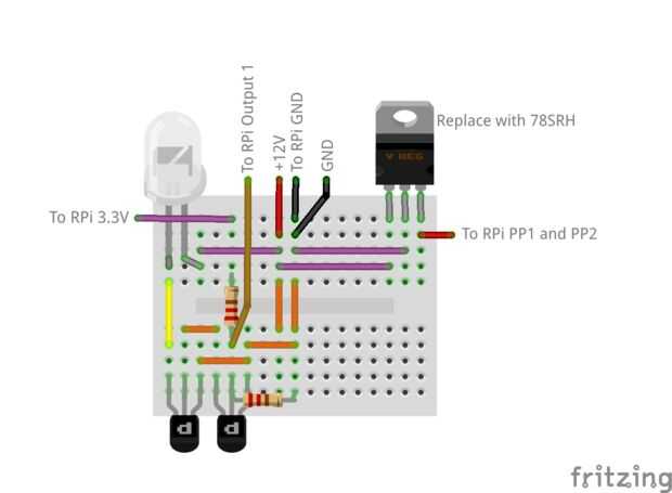 El RaspberryPi enciende la bombilla de LED de encendido y apagado por medio de una red de transistores conectada al "lado bajo" (pines GND) de la bombilla LED.