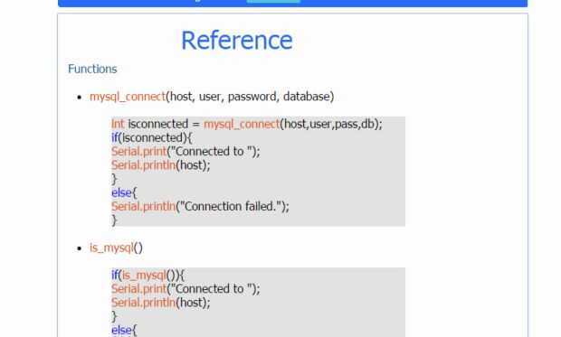 También puede descargar el código fuente de MysqlIO, MysqlIO de la aplicación o librería de Arduino desde mi web también, allí encontrarás referencias de otras funciones.