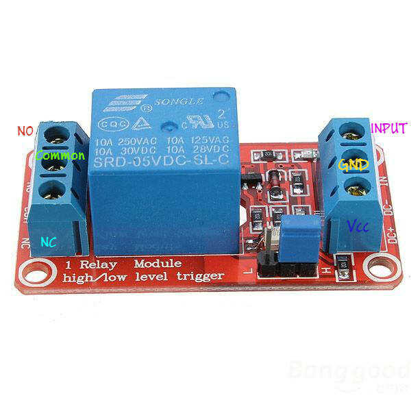 Cuando tengas algo conectado a los relés que sin conector (normalmente abierto) y establecer el correspondiente PIN en bajo (0v), energía fluirá del conector COMM y el conector NO accionar el dispositivo.