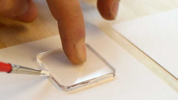 A veces es difícil distinguir las piezas cuando se juega, así que pinté los bordes de la mina. Utilicé un pincel pequeño y pintura acrílica para los tokens claro blanco y los espejos color negro.