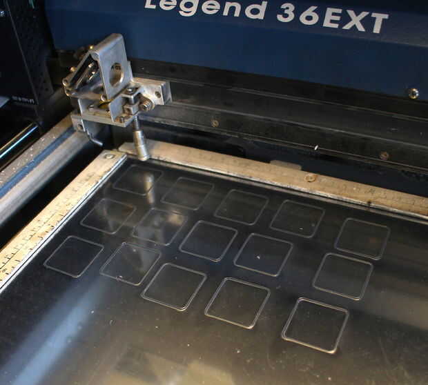 Descargar el archivo adjunto, que incluye patrones para las piezas del juego de espejos, y recorto en 1/8 acrílico claro. Configuración de la herramienta de corte láser es idénticas al paso anterior.