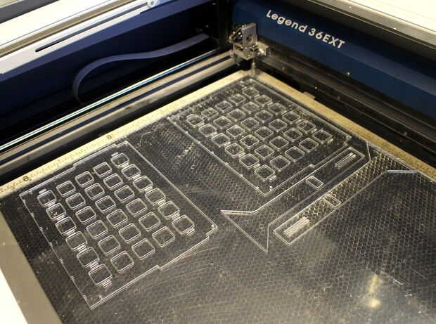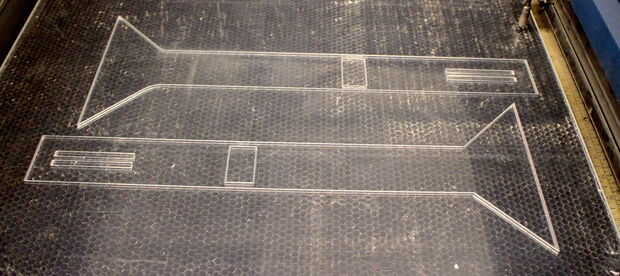 Finalmente, descargar el archivo que incluye los patrones para el tablero de juego y las piernas y recorto en 1/4" acrílico transparente. Utilicé la configuración incluida en la imagen aquí.