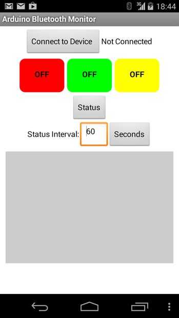 El componente clave de la aplicación de conexión Arduino Bluetooth es el cliente Bluetooth, mientras que la placa Arduino actuará como servidor: Esto significa que la aplicación siempre inicia la conexión. Cuando la alimentación de la placa Arduino, el LED de Bluetooth módulo rojo comienza a parpadear; Presione el botón de "Conectar a dispositivo" de la aplicación y seleccione el módulo de la lista: el LED rojo se convierte en sólido y el estado de la conexión cambiará a "Conectado".