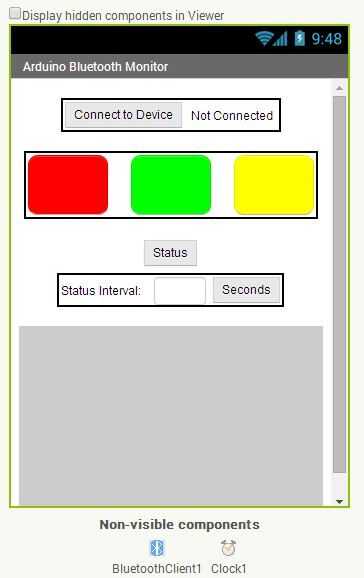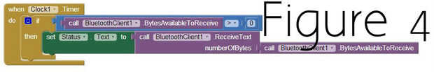 Cada vez que se activa el temporizador Clock1, esta rutina se ejecuta: es el equivalente de serialEvent() de Arduino; Si hay bytes recibidos por BluetoothClient1, se copian en la etiqueta de estado. Tenga en cuenta que el objeto cliente Bluetooth tiene un método de devolver la longitud del mensaje se ha recibido.