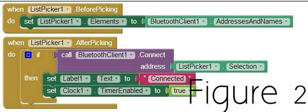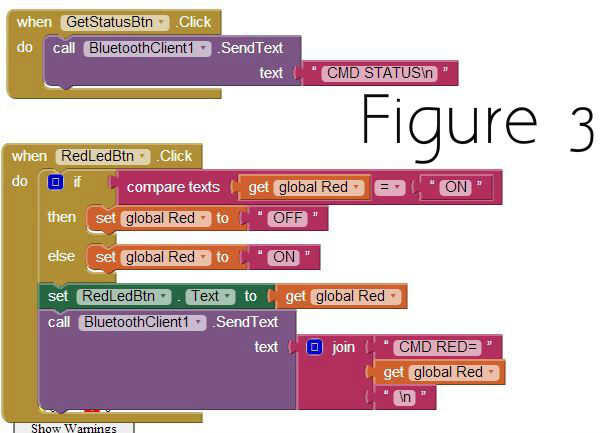 - por último, se llama BluetoothClient1.SendText para transmitir el comando.