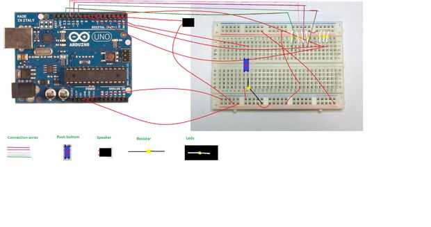 Con estas imágenes deben ayudarle a conseguir un ide de como Conecte el altavoz a la placa arduino y hacen tocar la melodía básica que se encuentra en el programa de arduinio en tú pc.