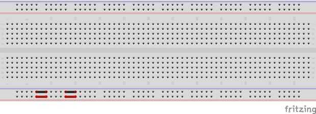 Paso 2: Si la conectividad de carril de alimentación de tu protoboard es continua puede omitir este paso