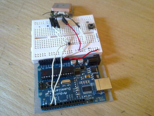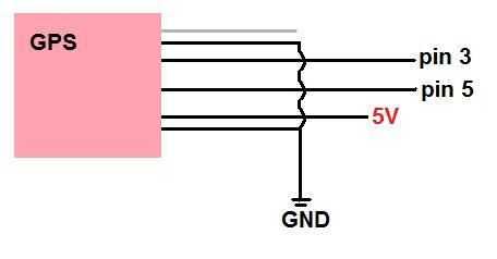 Conecte los cables GPS a Arduino como en este esquema a continuación. Donde "pin 5" se acostumbra "TX" y "pin 3" como "RX".