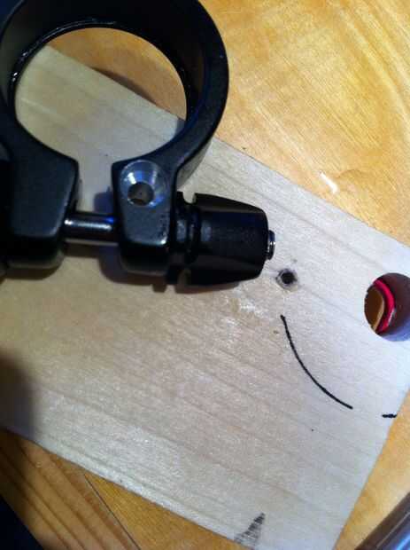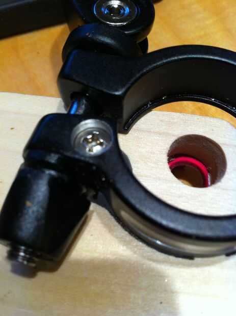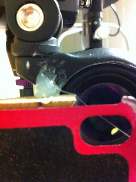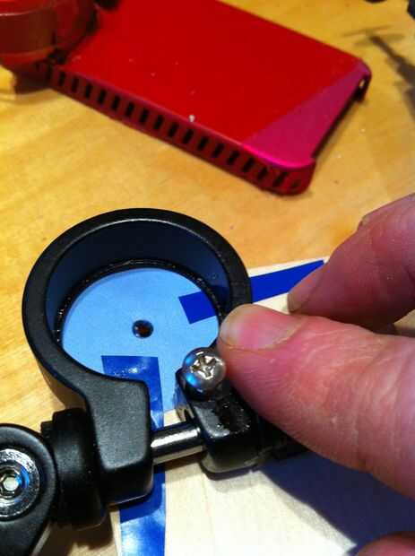 Este es el paso más importante y debe realizarse con cuidado. He utilizado varios métodos de centrado pero mejor dependía de montaje de la pinza en el ocular y luego ajustar la posición de la caja pegada con el iphone en posición hasta que se obtuvo una imagen de video perfectamente centrada y luego bien caliente pegar el asiento post abrazadera temporalmente o marcando muy cuidadosamente para estar seguro de su posición permanente. Desea que el blocaje rápido en la posición superior sin obstáculos en la puesta a punto. Aunque algunas otras variaciones pueden servirle mejor. Otra cosa a tener en cuenta que es parte de la pinza debe ser móvil para permitir la función de la palanca de liberación rápida. Se puede ver en las fotos lo he hecho mío. Para mantener en posición también perforó un agujero en la abrazadera y atornillado con un tornillo de seguridad para asegurarse de que no habría ningún problema si el pegamento no se pudo. Esto resultaría en un desastre de $600, y se advierte tener cuidado con su construcción y uso bajo su propio riesgo. Odio renuncias en estos proyectos de bricolaje pero es bastante obvio que si las partes no le iphone 4 estará tostada. Han utilizado varias variaciones en este soporte durante varios meses y sentirte seguros que si bien no existe riesgo. Si te sientes nervioso podría poner una línea de anclaje de seguridad de una pequeña ventosa en el cristal del iphone por el ocular. El tornillo de seguridad, así como la sección de la abrazadera que es el ser inmóvil se pega con epoxi--usar bonos de J/B para esto.
