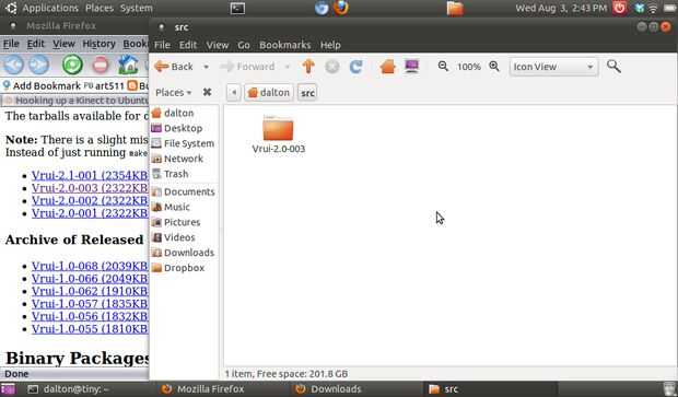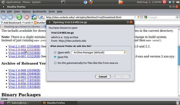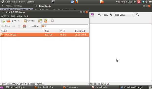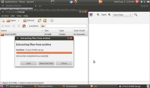 Haga doble clic en el Vrui-2.0-003.tar.gz descargado [debe estar en tu carpeta de descargas]