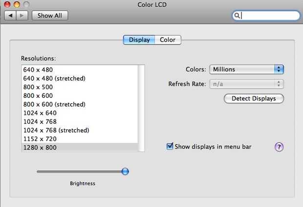 haga clic en "Pantallas", usted será recibido con muchas más opciones. Recomiendo a que usted poner la