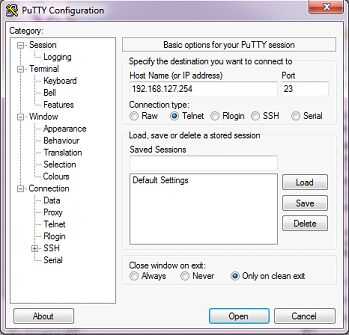 Ahora necesitamos a telnet en el dispositivo y le dan una IP que funcione en nuestra LAN. Ir a Inicio > buscar (o ejecutar) > escriba cmd y pulse Enter. Descargar PuTTY. Nueva versión de Windows puede o no tener Telnet o Hyperterminal instalado, y la masilla es bastante buena. Debería verse como imagen 2. Haga clic en abrir.