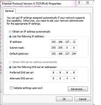 Busque el botón usar la siguiente dirección IP. Rellene la Dirección IP y subred, a continuación, haga clic en Aceptar. Si Windows le indica sobre la puerta de entrada, haga clic en sí para continuar. Imagen 1 se utiliza como ejemplo. La IP dirección usado aquí probablemente funcionará, sólo debes elegir 192.168.127.x, donde x no es 1, 254 y 255.
