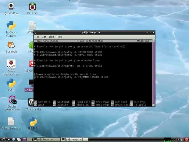 Arranque el Pi y con privilegios de super usuario hacer algunas ediciones (por ejemplo "sudo nano").