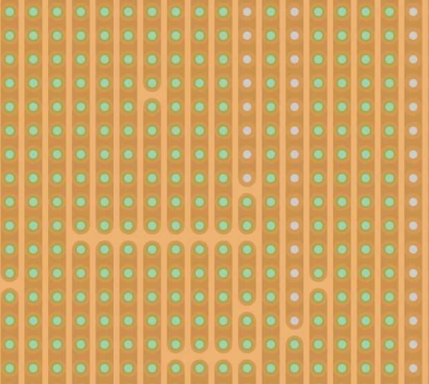 El tamaño del tablero debe ser, como mínimo, 17 agujeros de tiras x 13. Dicho esto, utilicé 15 agujeros para apoyar mi cables algunos extra.