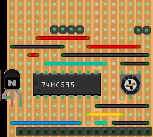 Entonces el 74HC595 Shift Register, potenciómetro entonces el NPN.