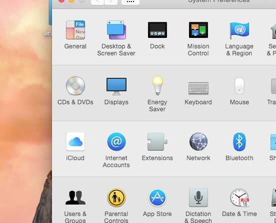 Una vez abierto, el sistema de preferencias menú tendrá el siguiente aspecto. Tiene que elegir el cambio de icono de mostrar las propiedades de la pantalla actual.
