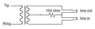 Todo lo que necesitas es un par de componentes – un transformador de 600 a 600 ohm con una derivación central, una resistencia de 150 ohm (marrón marrón verde), un jack modular y dos conectores mini de 3,5 mm.. Había montado mi circuito en una caja de enchufe modular de montaje de pared.