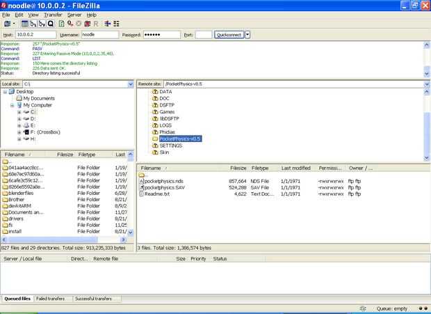 Mirar en la pantalla de la DS y FZ, verás algunas palabras apareciendo por todas partes, dan es un segundo y luego verás un listado de archivos de la tarjeta de memoria en tu DS. De aquí el uso es bastante simple, arrastre desde la izquierda lateral (ordenador) a la derecha (la tarjeta de memoria) y visa versa.