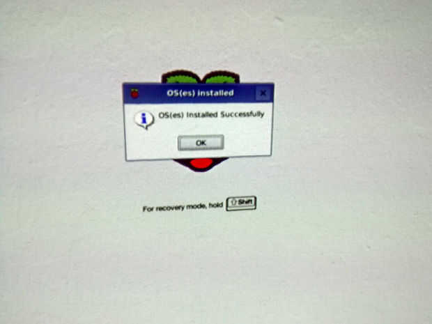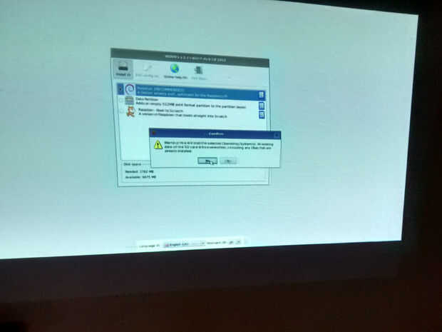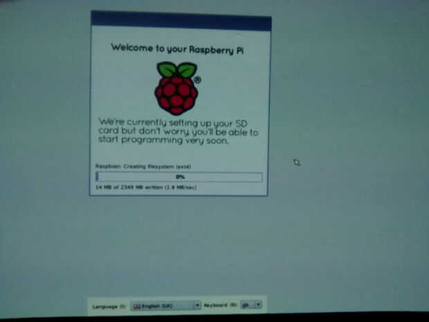 Habrá varias ventana de advertencia, golpeó a sí a la opción recomendada de instalar Raspbian y luego espere la Pi a la puesta en marcha.