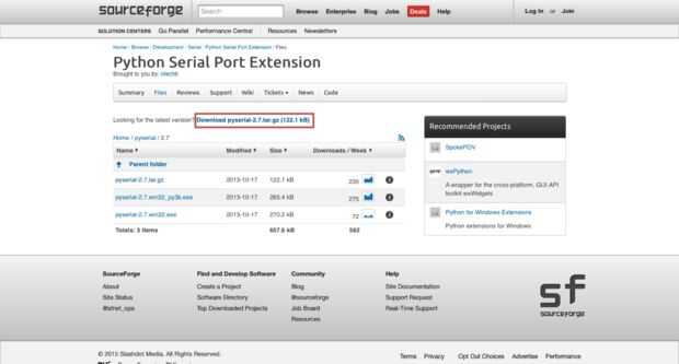 Haga clic en el enlace proporcionado en la introducción y haga clic en el cuadro rojo. Asegúrese de que mueves a tu escritorio. Una vez allí, haga doble clic en el archivo "pyserial-2.7.tar.gz" y creará una carpeta pyserial-2.7.