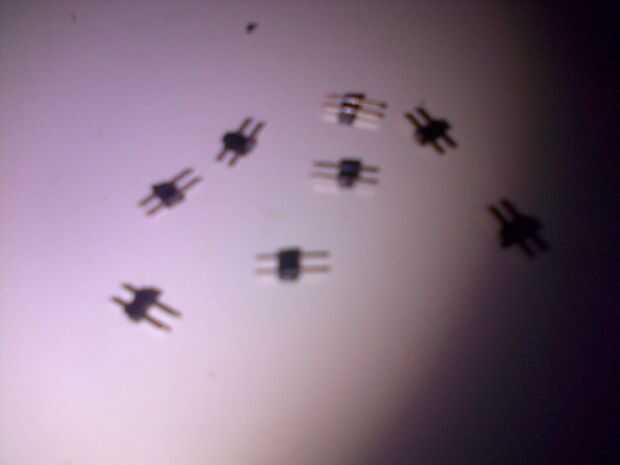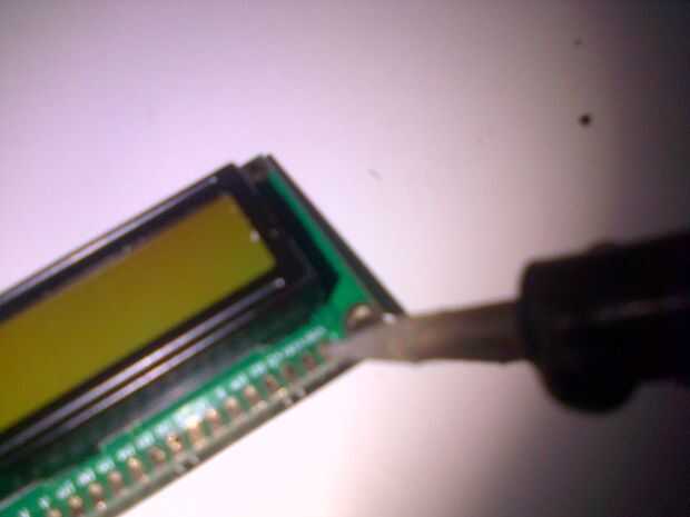 Cuando se les inserta, voltee la pantalla y aplique una pequeña cantidad de soldadura a cada terminal,