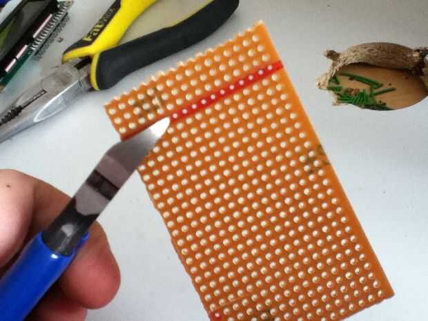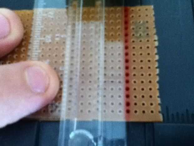 se pueden utilizar pequeños cortadores para cortar a lo largo de la línea (sin embargo, se le daño TE junta a la derecha de la línea, por ejemplo que será romper el otro lado en trocitos, pero el tablero a la izquierda de la línea va ser OK)