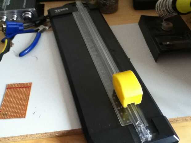Conseguir un cortador de papel e introduzca la Junta a donde está la línea,