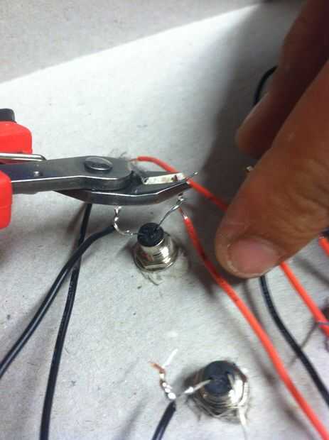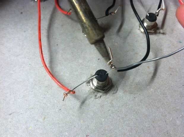 Ahora que hemos conectado enlaces desde el tablero a cada LED, queremos garantizar ninguno de los cables cambio alrededor o desconectar. Para ello vamos a poner un pequeño trozo de soldadura en la base de la torcedura que hicimos. Después de aplicar la soldadura, conviene cortar los extremos del alambre - recorte alrededor de la mitad de la conexión con el cable tijeras funcionará perfectamente. Esto evitará meter los ojos o los dedos mientras trabajamos a través del resto del proyecto.