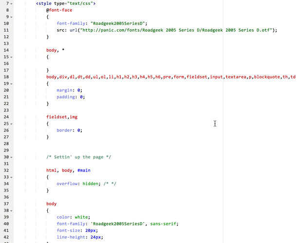 El formato especial es en el CSS de la página web. La CSS está integrada en el archivo HTML en lugar de llamar a un archivo CSS independiente.