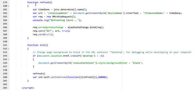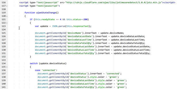 También hay unos javascripts en el archivo. El primer script, llamado jstimezonedetect, ayuda el Panel DIY para el host el nombre de zona horaria del sistema. La zona horaria es necesaria para que nuestra aplicación web puede configurar automáticamente la hora en el widget de estado junta. El javascript recibe el nombre de zona horaria de una lista normalizada de nombres y pasa al servidor de la aplicación como un parámetro en una petición de actualización de AJAX.