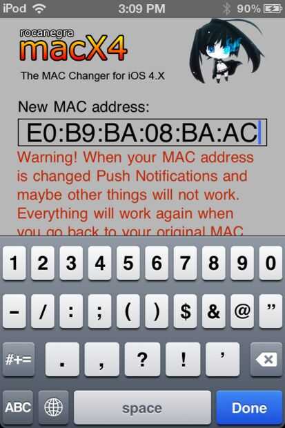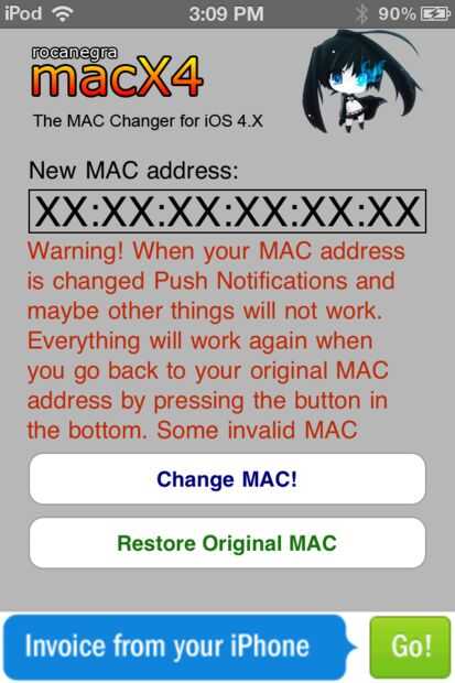 Aquí es donde el dispositivo jailbroken. Ir a cydia y descargar la aplicación llamada macX4. Una vez que lo tienes, abren. Escriba en números, letras y dos puntos registrado desde el dispositivo escolar y, en cambio Mac El dispositivo se reiniciará. Una vez que se gira hacia atrás, debe ser capaz de conectarse a la red. Aviso-desde mi experiencia, notificaciones push, música y posiblemente otras cosas no funciona, hasta que cambie nuevamente. Una vez que termines usando wifi en la escuela, basta con abrir la aplicación otra vez y haga clic en restauración la aplicación original. El dispositivo se reiniciará otra vez, y todo volverá a la normalidad.
