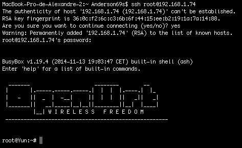 En Windows, utilice masilla para conectar a YUN. En Linux, puede usar ssh.