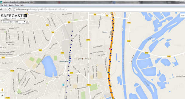 Al final de la subida, YUN se reinicia y el programa se ejecuta. La pantalla LCD muestra la radiactividad del medio ambiente. Datos se envían cada hora para SafeCast. Así puedes ver su contribución directamente en el mapa del sitio.