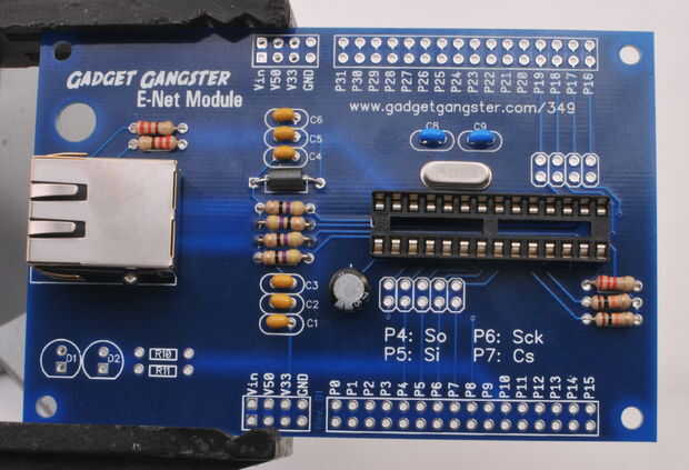 Ahora, agrega el PulseJack a U2. Hay sólo una forma en que se puede ir. Voltear el tablero de cada pin en la soldadura y doblar hacia fuera las lengüetas de metal.